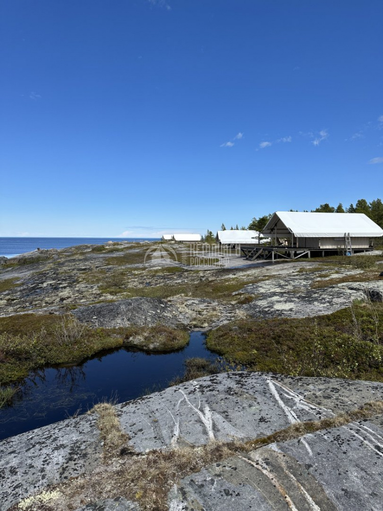 Шатровый кемпинг расположен на острове Студенцы, в 10 км от города Кемь. Это полностью необитаемый остров с пресным озером и нетронутой дикой природой.